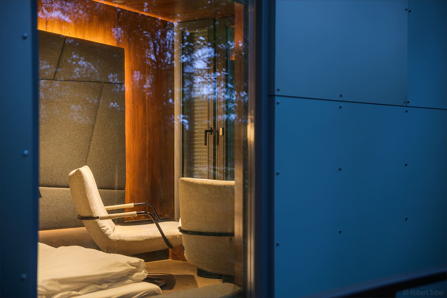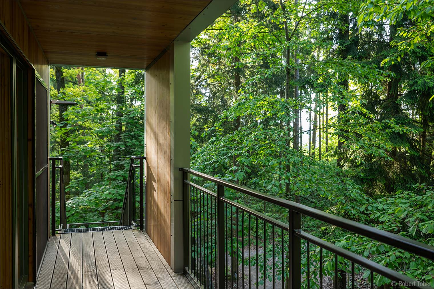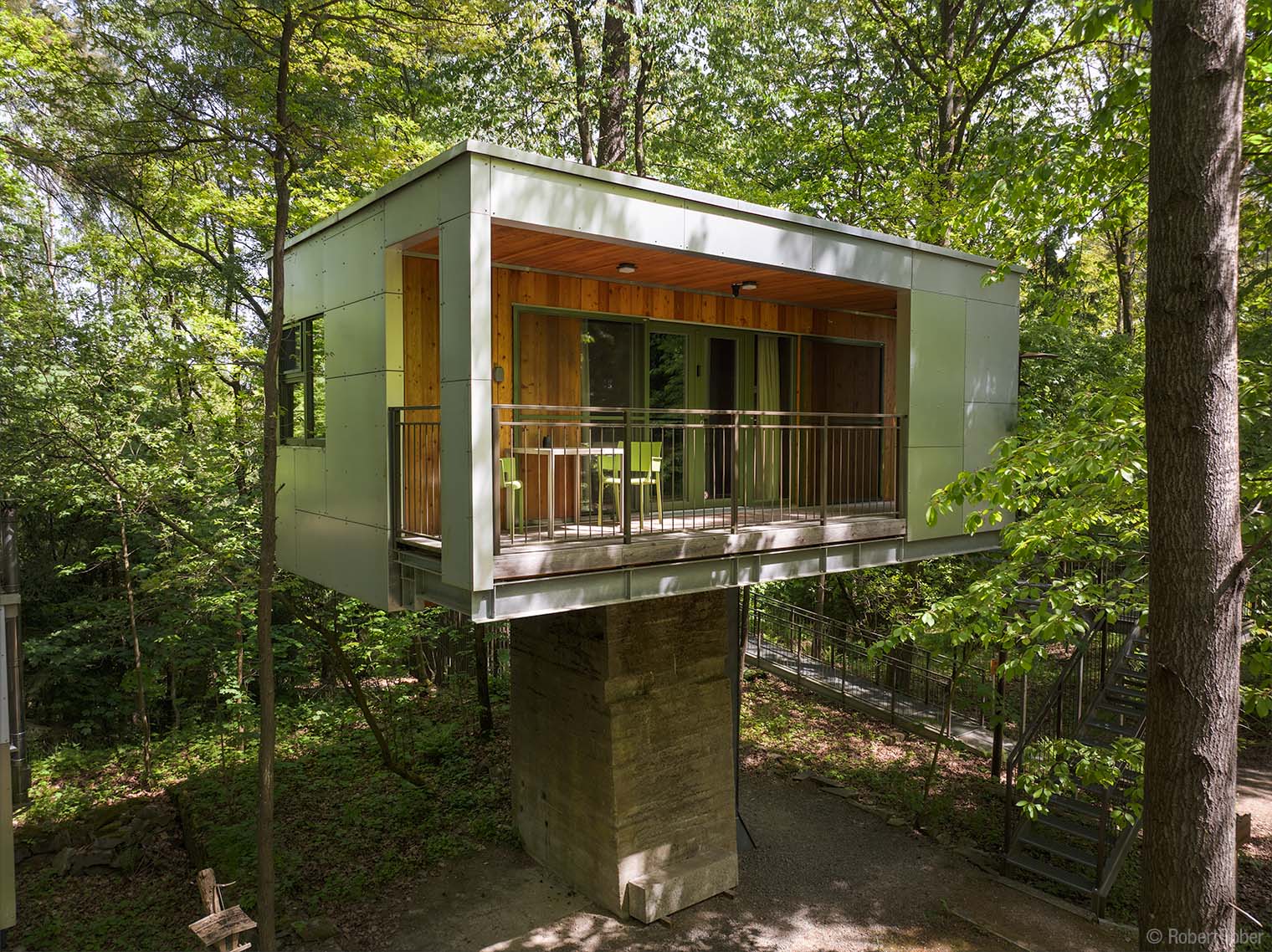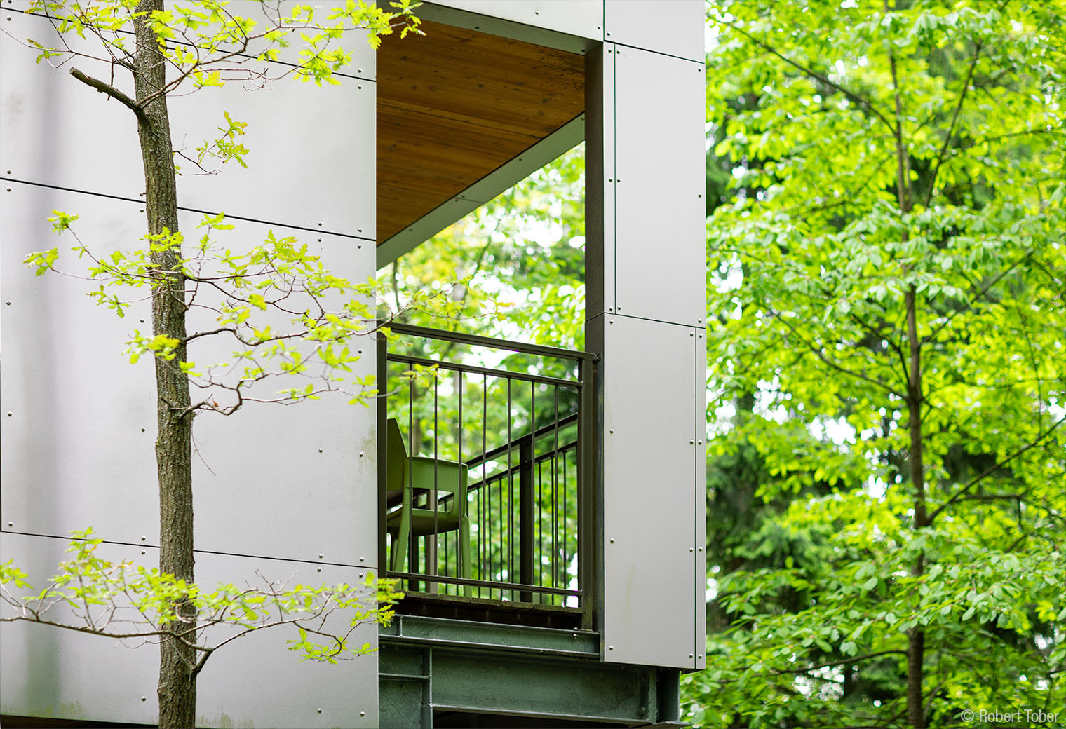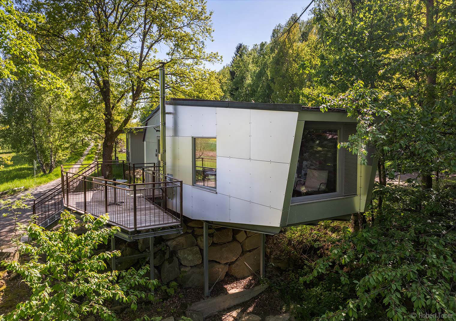 Klippenhaus · Die Holzkonstruktion aus Fichten-Fünfschichtplatten ist mit Aluminium-Verbundplatten verkleidet